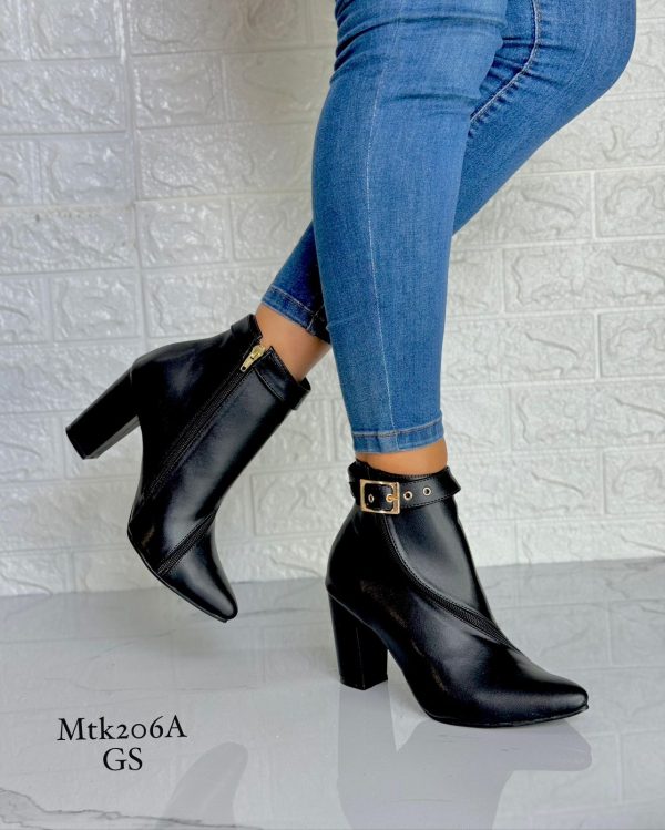 EL CLÁSICO BOTÍN HASTA EL TOBILLO ADQUIERE UN TOQUE DE FRESCURA OCCIDENTAL EN ESTOS BOTINES DE PUNTA PUNTIAGUDA CON TACONES DE BLOQUE Y DECORACIÓN DE HEBILLAS. EL PERFIL DELGADO ES IDEAL PARA COMBINAR CON VESTIDOS FEMENINOS, FALDAS, LEGGINGS O JEANS.