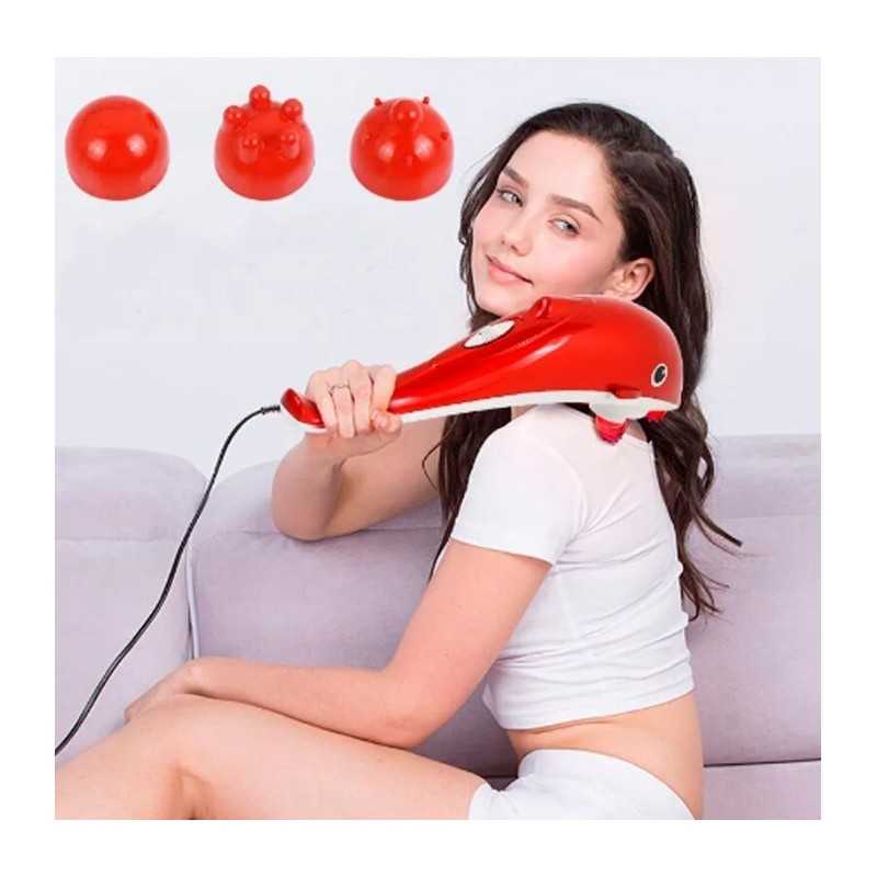 Contiene tres cabezales con distintas funciones: uno es para masajes en general, otro para nudos y contracturas y otro para ayudar a mejorar la circulación.